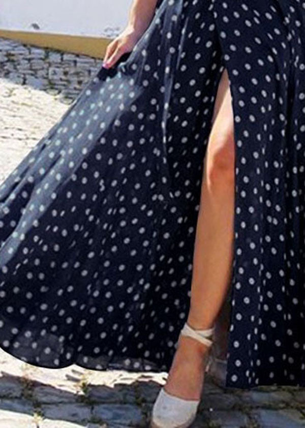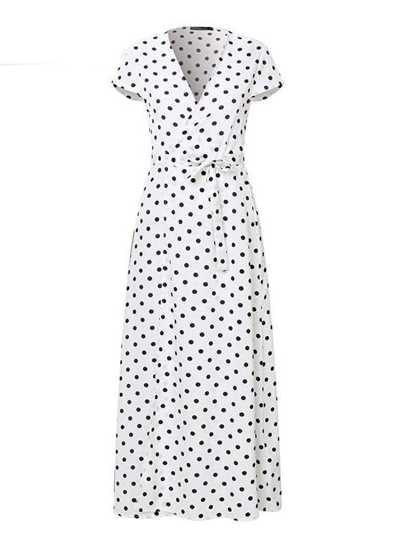 Polka Dots V-neck Short Sleeve Print Split Party Wrap Maxi Dress