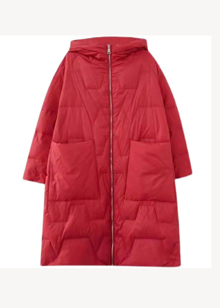 Plus Size Beige Hooded Pockets Fine Cotton Filled Parkaer Winter