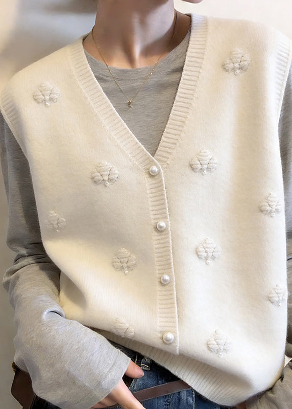 Modern Apricot V Neck Floral Button Cotton Knit Waistcoat Sleeveless