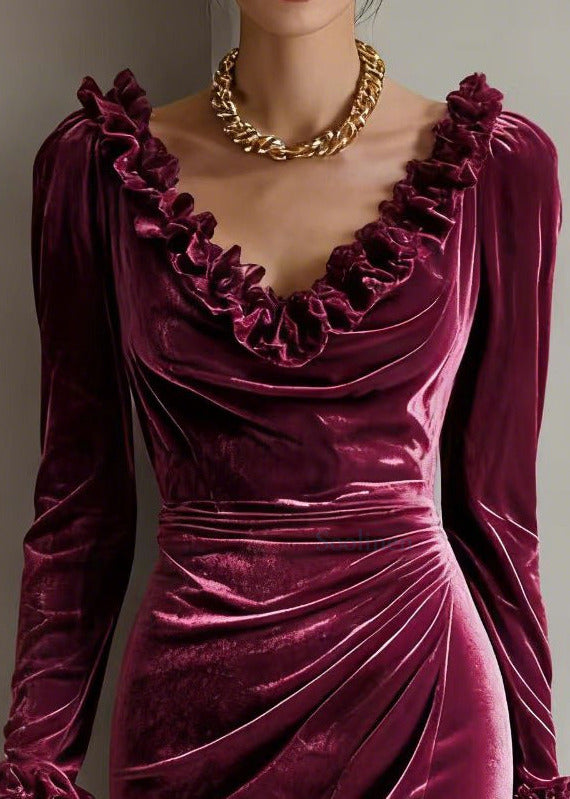 Style Mulberry Ruffled Wrinkled Silk Velvet Vacation Dresses Spring
