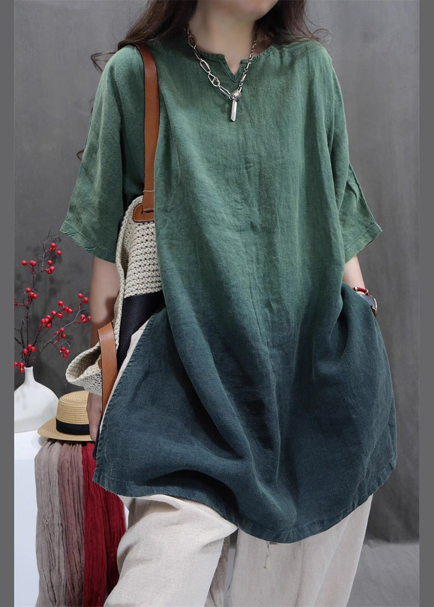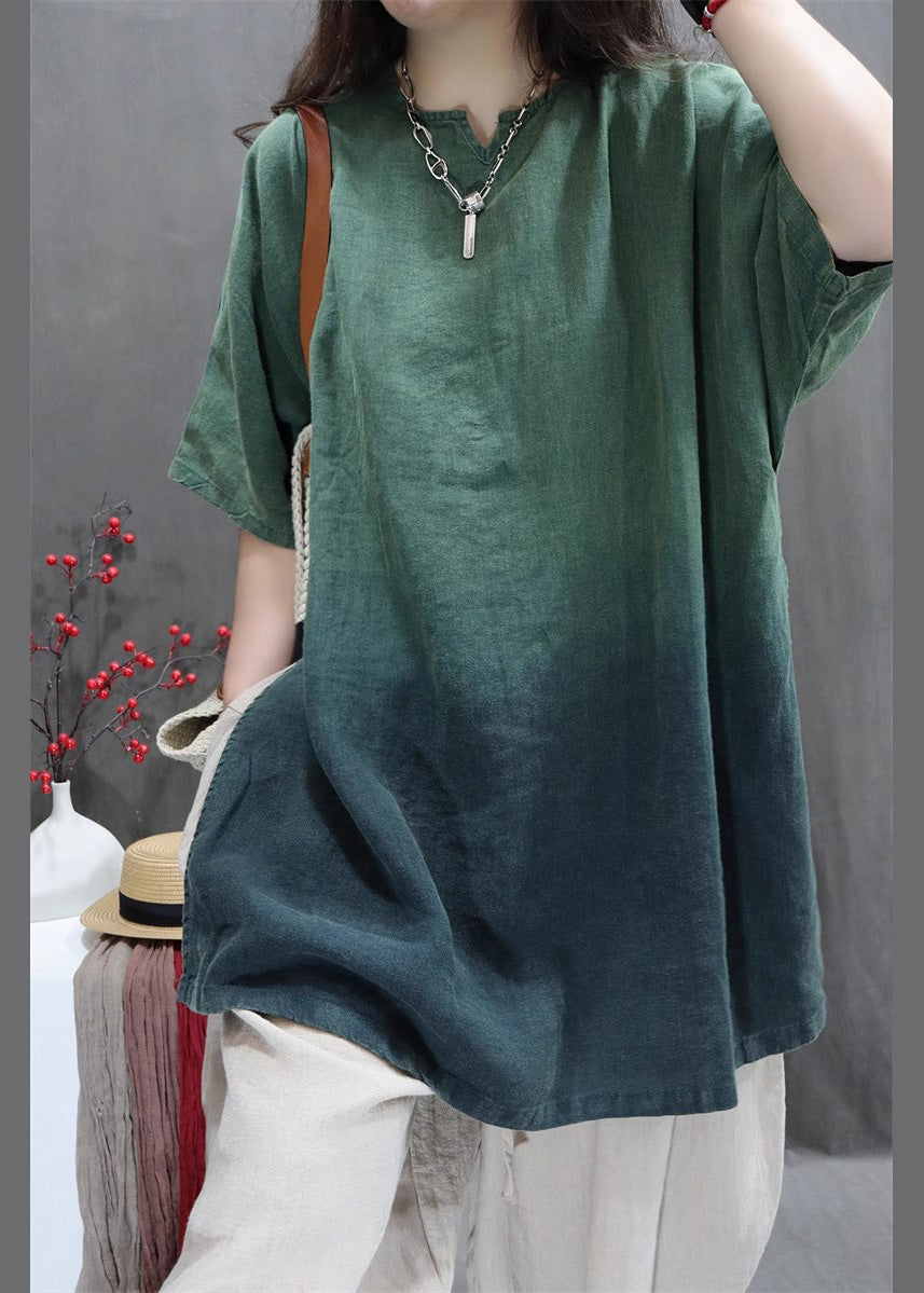 Gradient Green Linen Shirt Oversized Side Open Summer