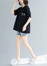 Diy Black O Neck Cartoon Print Cotton T Shirt Tops Short Sleeve