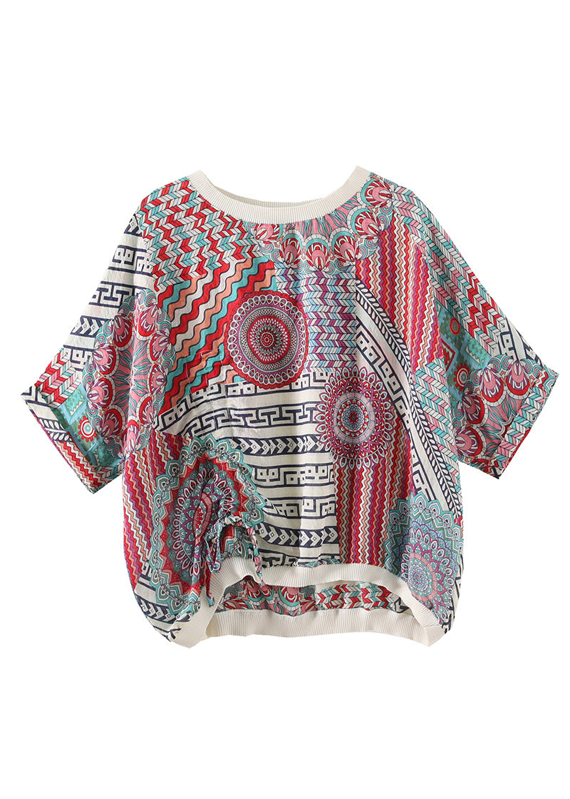 Modern O-Neck Print Low High Design Cozy Top Summer