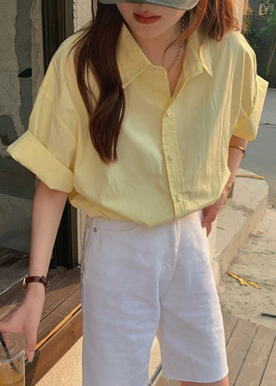 Yellow Button Solid Cotton Summer Shirt Peter Pan Collar