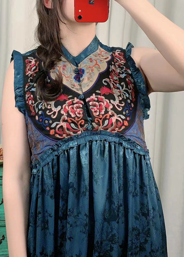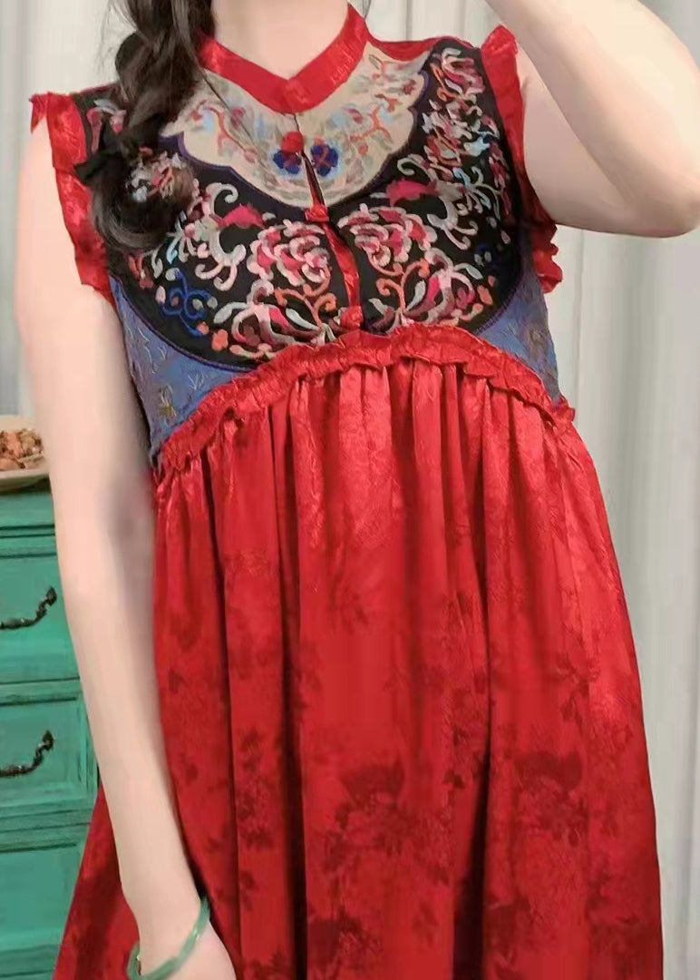 Boutique Red Ruffled Patchwork Embroideried Jacquard Dresses Sleeveless