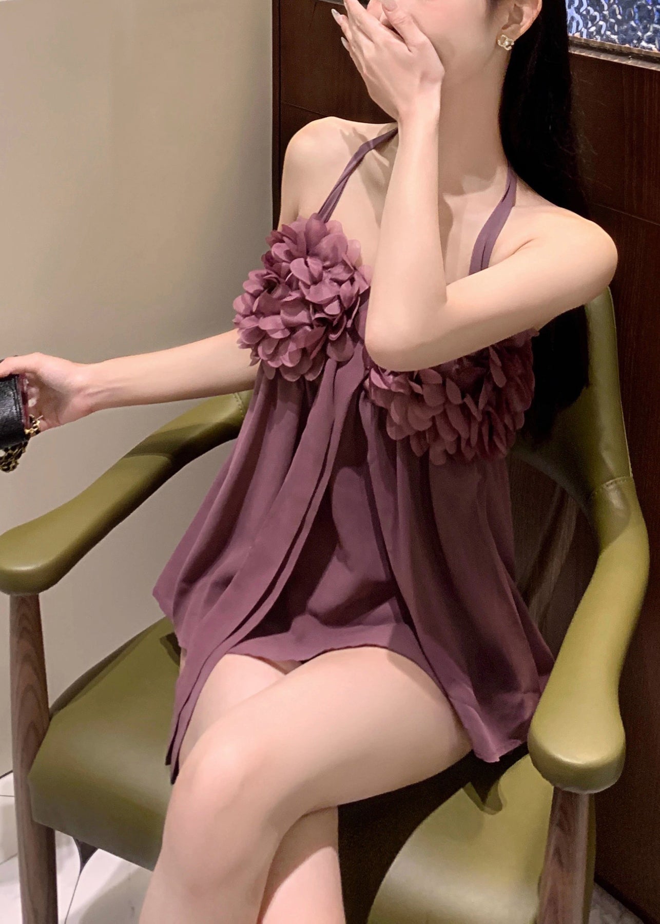 Sexy Purple Floral Chiffon Halter Tops Summer