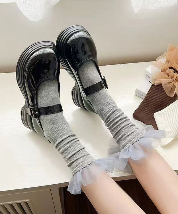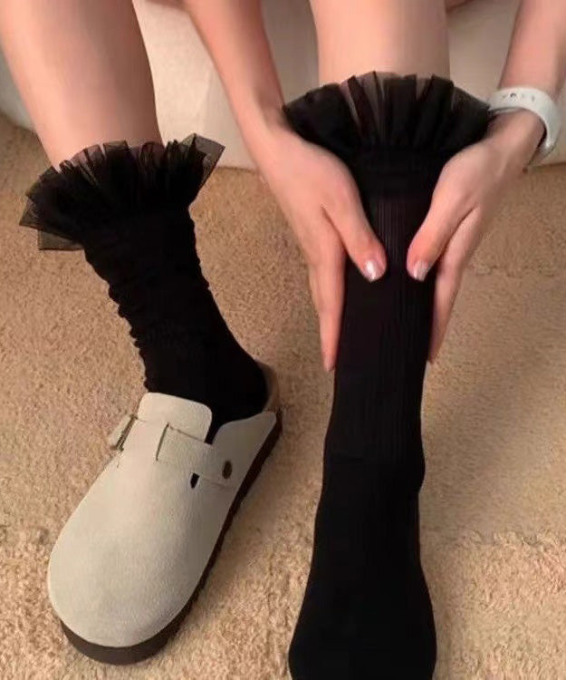 Beautiful Black Tulle Ruffled Cotton Mid Calf Socks