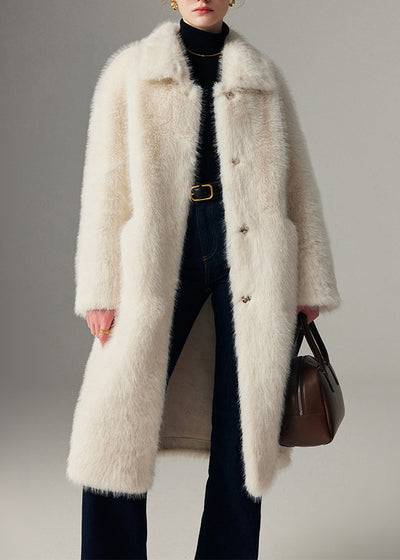 White Solid Cozy Leather And Fur Coats Long Sleeve
