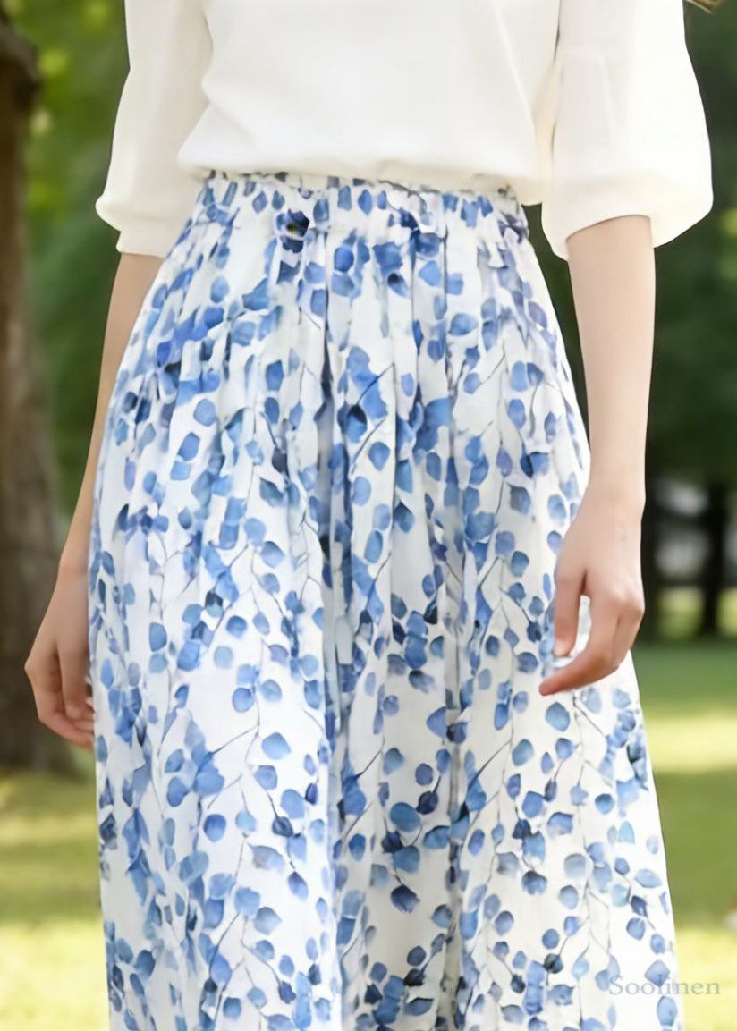 Art Blue Print Elastic Waist Cotton Skirts Summer