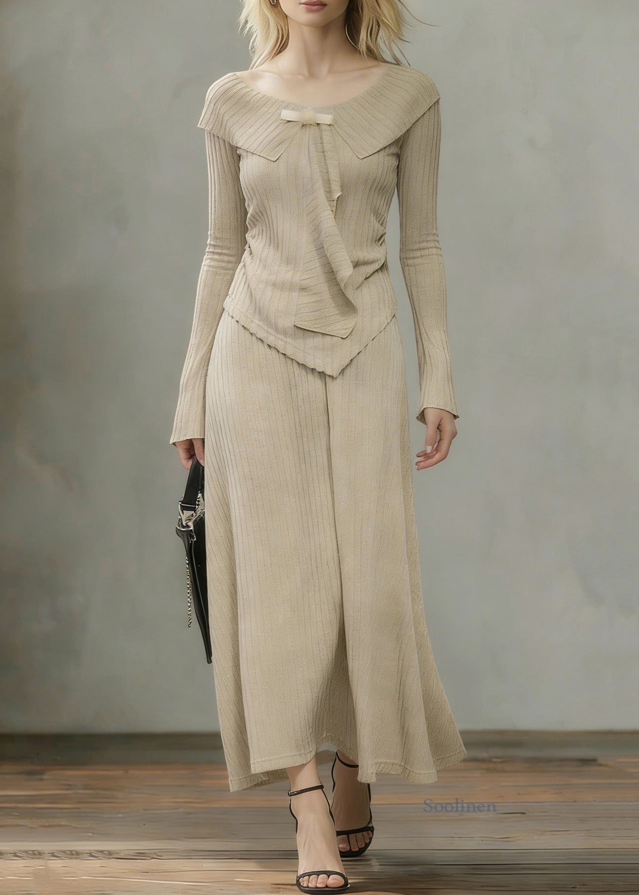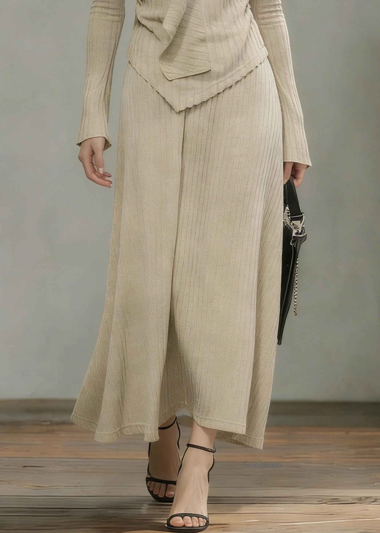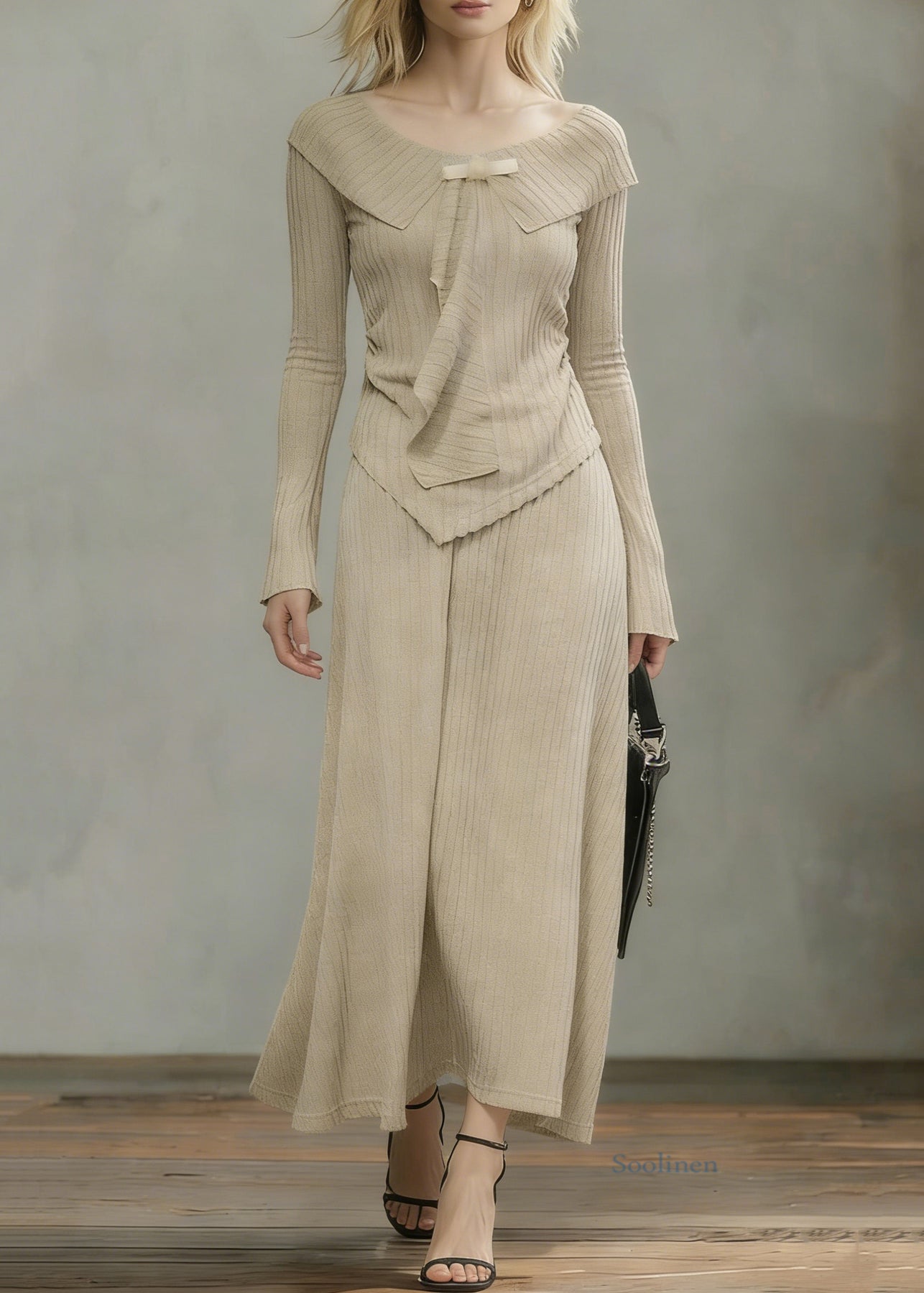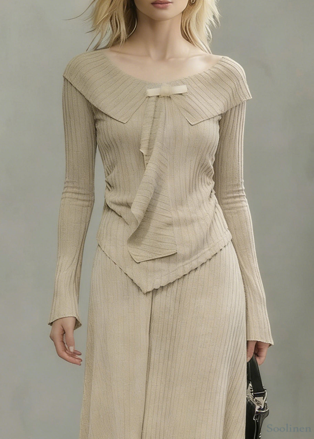 Art Khaki Asymmetrical Tops And Skirts Knit Two Pieces Set Spring