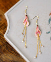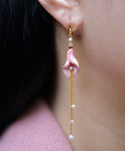 Beautiful Pink Sterling Silver Overgild Pearl Horseshoe Lotus Tassel Drop Earrings