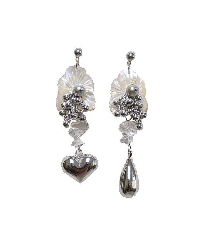 Boutique Silk Alloy Crystal Shell Pearl Asymmetrical Drop Earrings