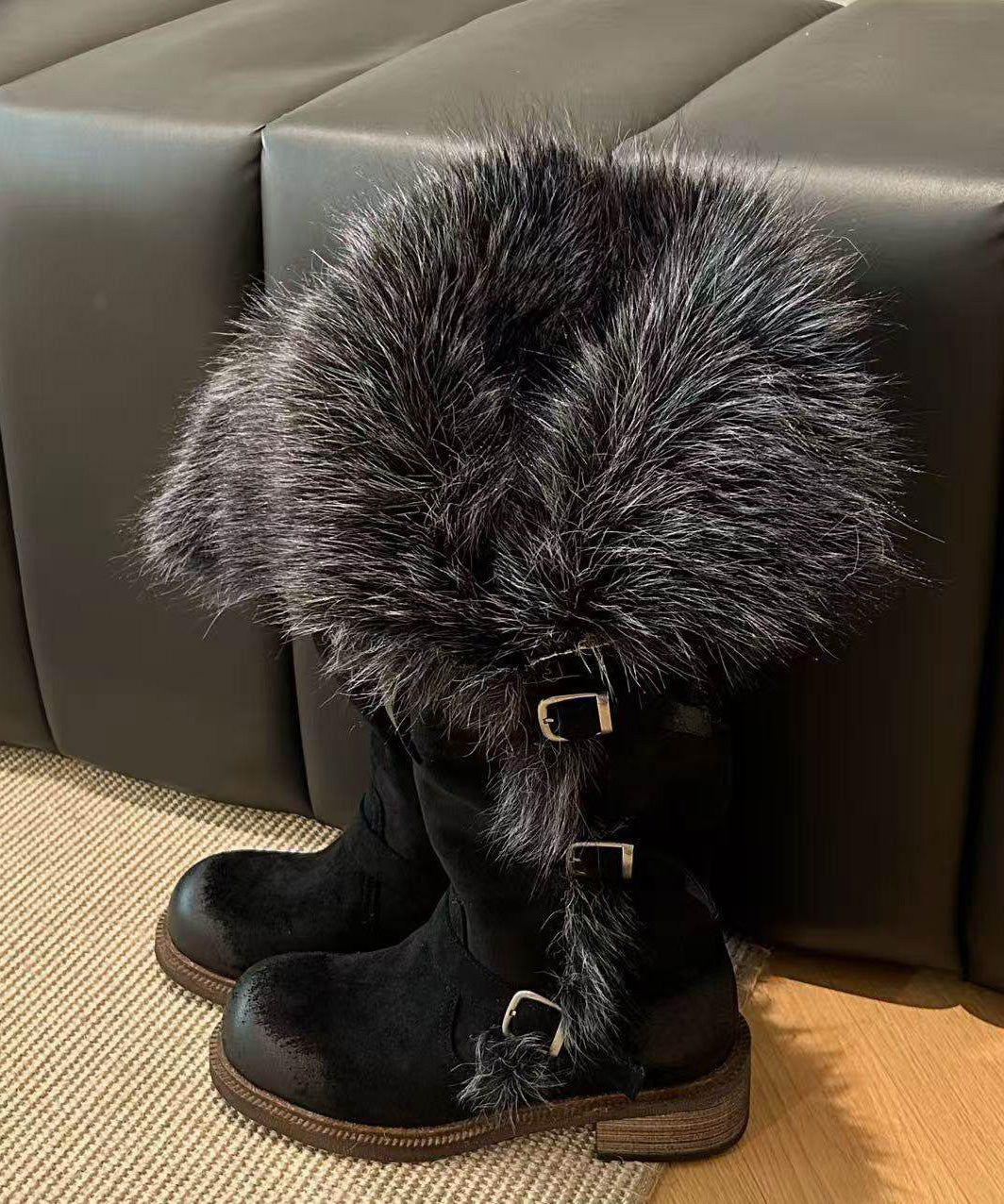 Chic Suede Grey Suede Splicing Boots Fuzzy Wool Lined
