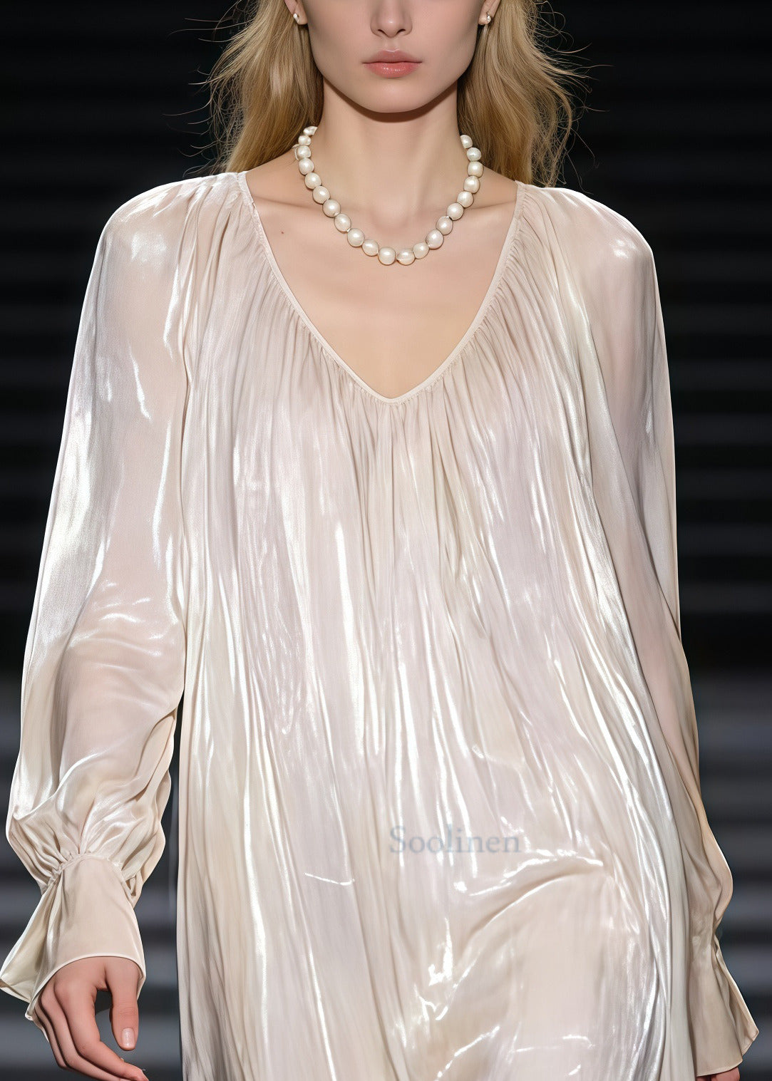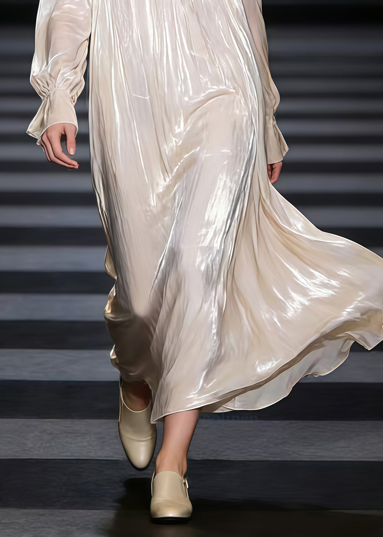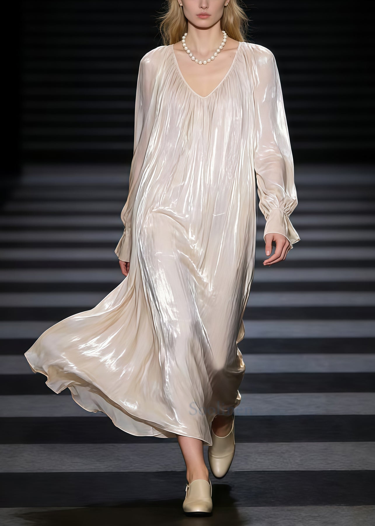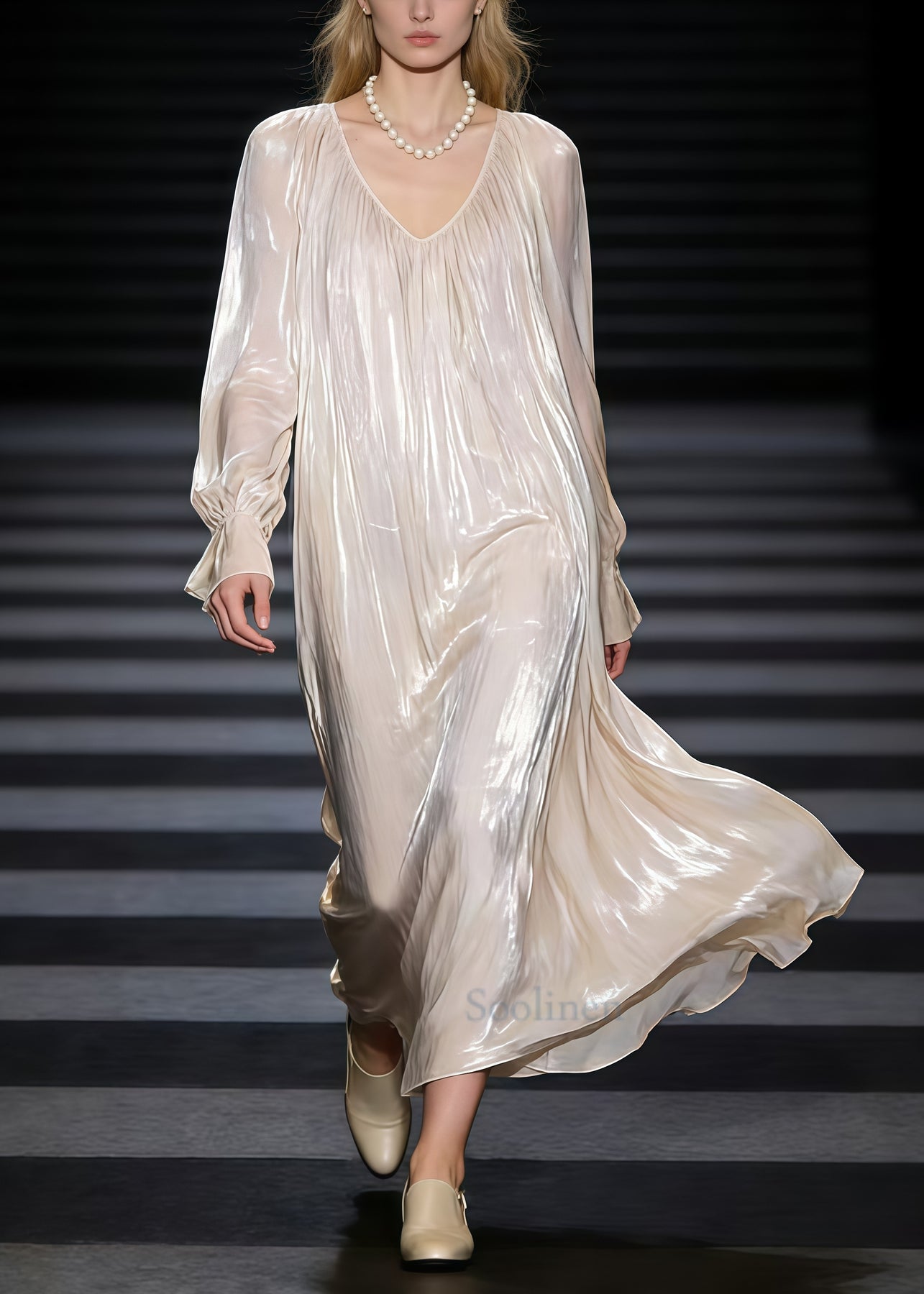 Fashion Beige Oversized Draping Silk Maxi Dress Spring