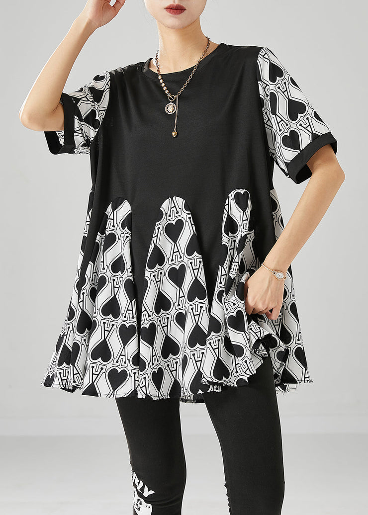 Fine Black Oversized Patchwork Love Print Chiffon Shirt Tops Summer