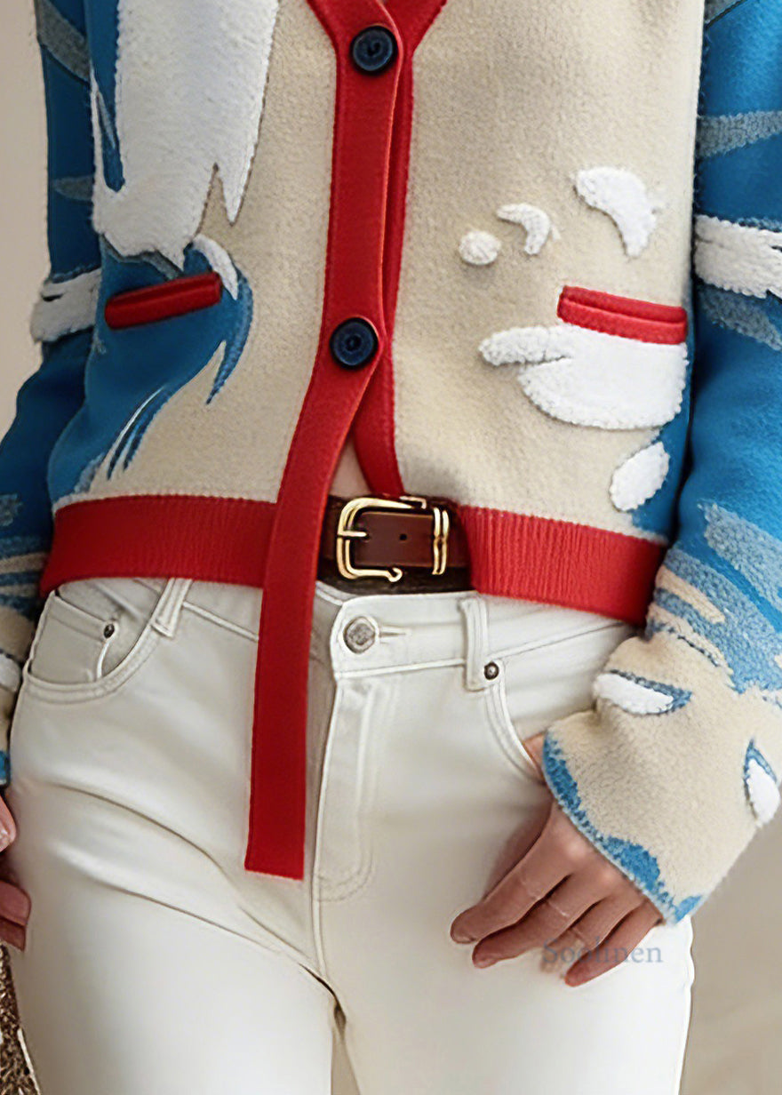 Fine Colorblock V Neck Patchwork Cotton Knit Cardigans Spring