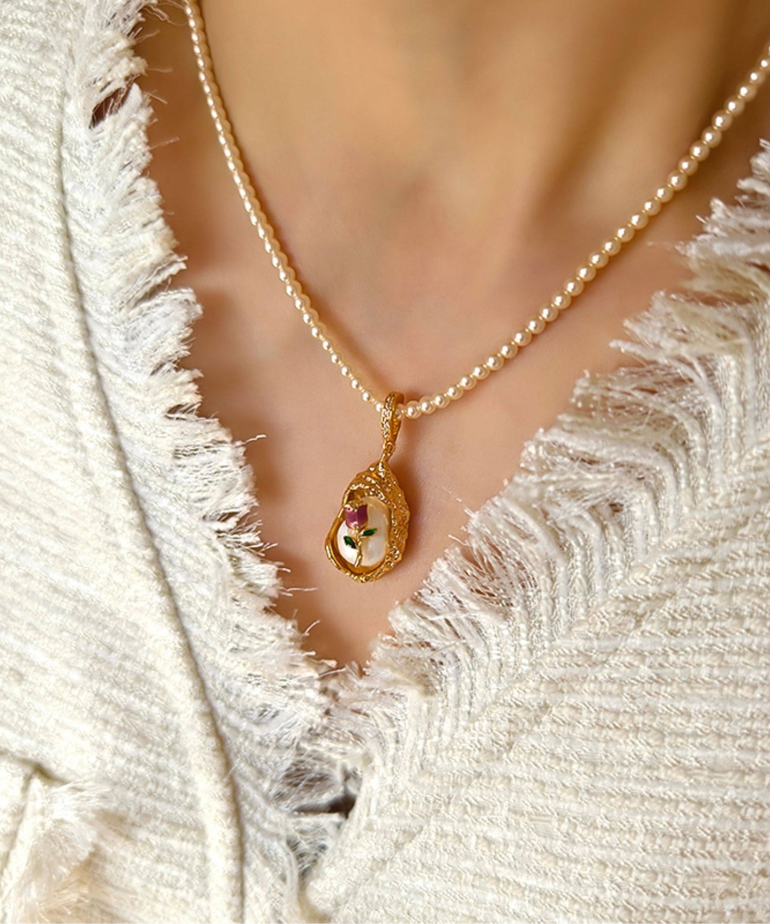 French Baroque Pearl Monet's Garden Pendant Necklace