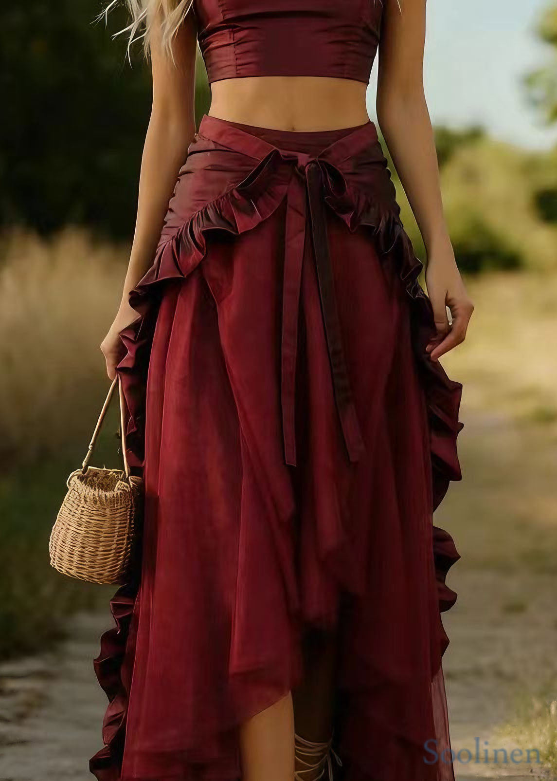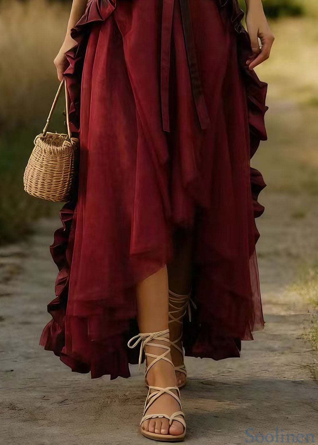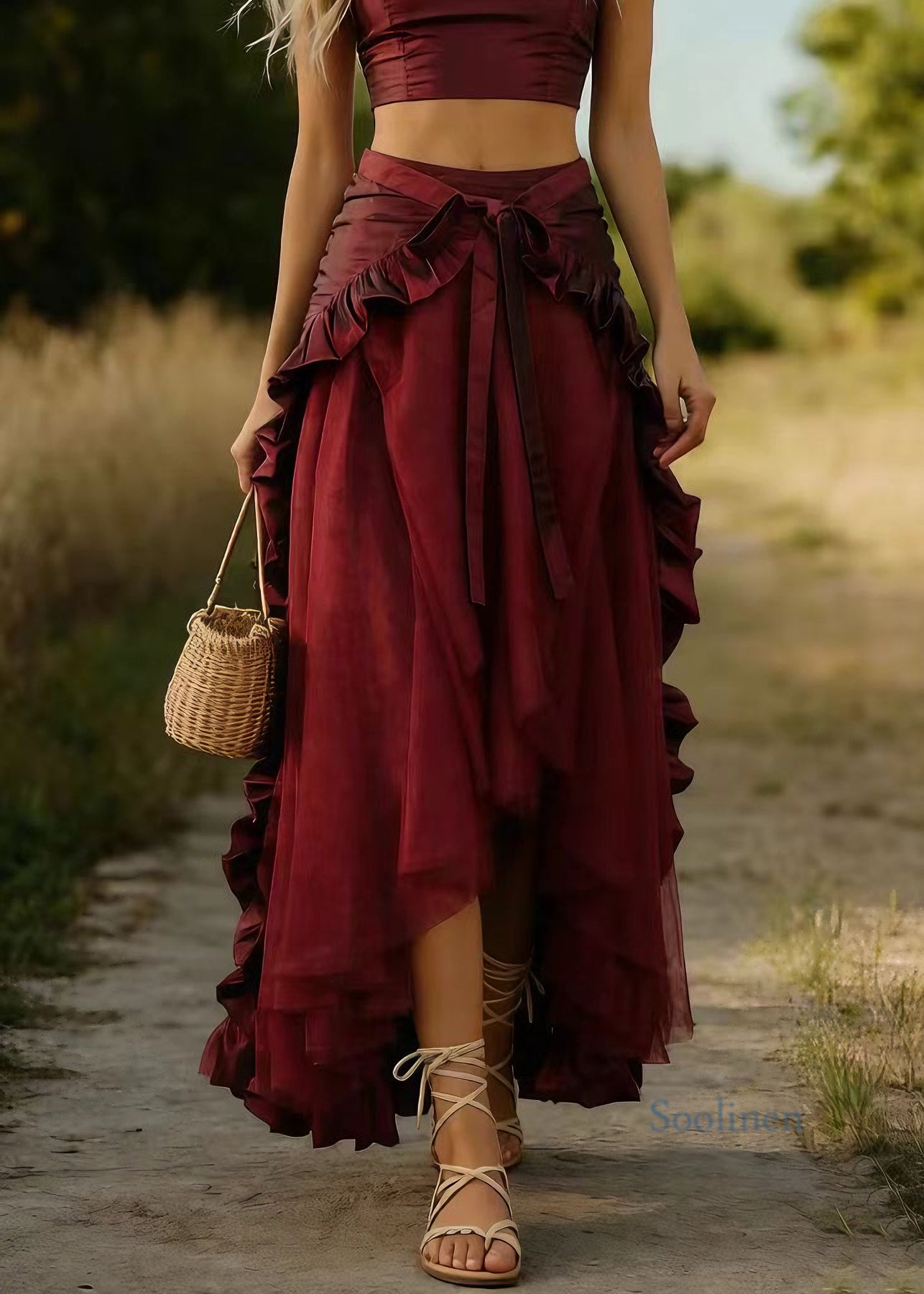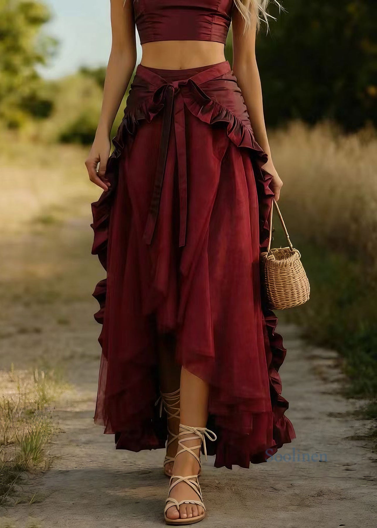Women Mulberry Ruffled Patchwork Tulle Skirts Spring