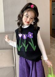 New Black O Neck Patchwork Knit Girls Waistcoat Sleeveless