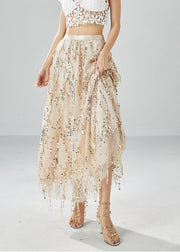 Modern Apricot Sequins Tassel Tulle Skirt Summer