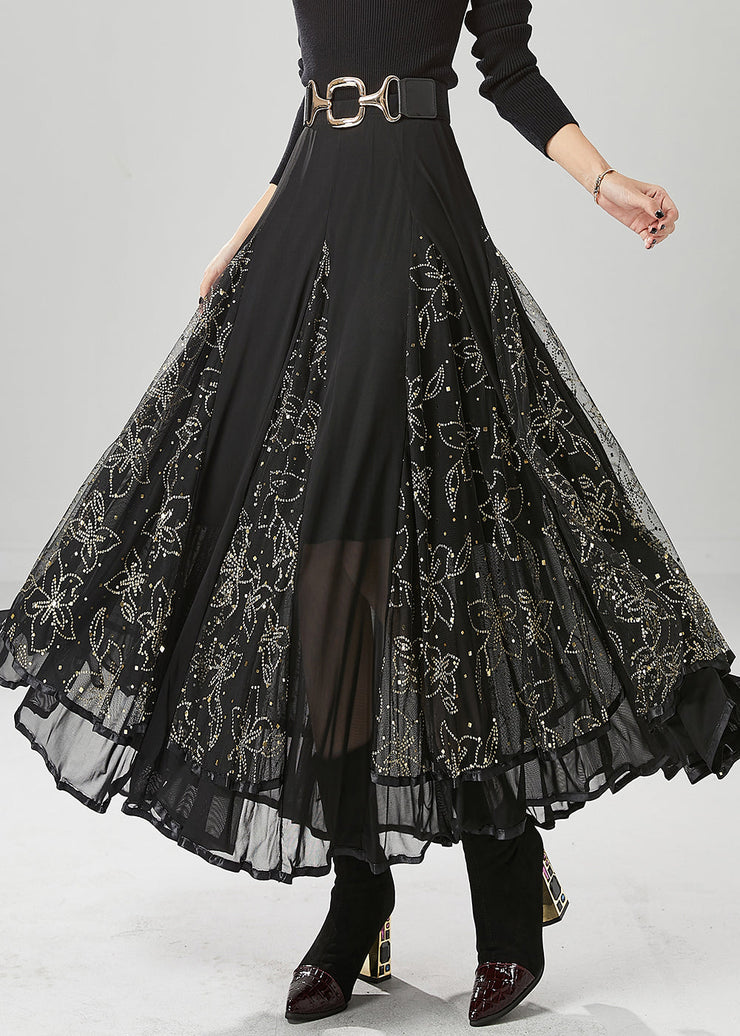 Modern Black Elastic Waist Exra Large Hem Tulle Skirt Fall