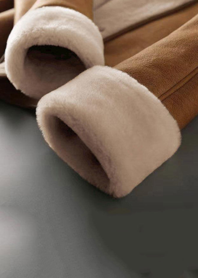French Camel Button Pockets Warm Fleece Faux Suede Coat Winter
