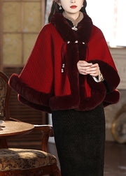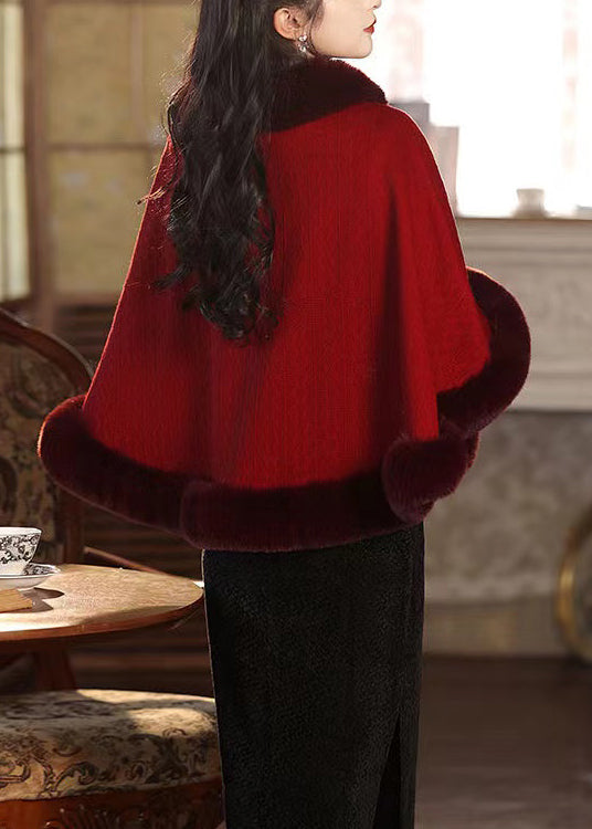 Boutique Red Fur Collar Patchwork Warm Fleece Cape Winter