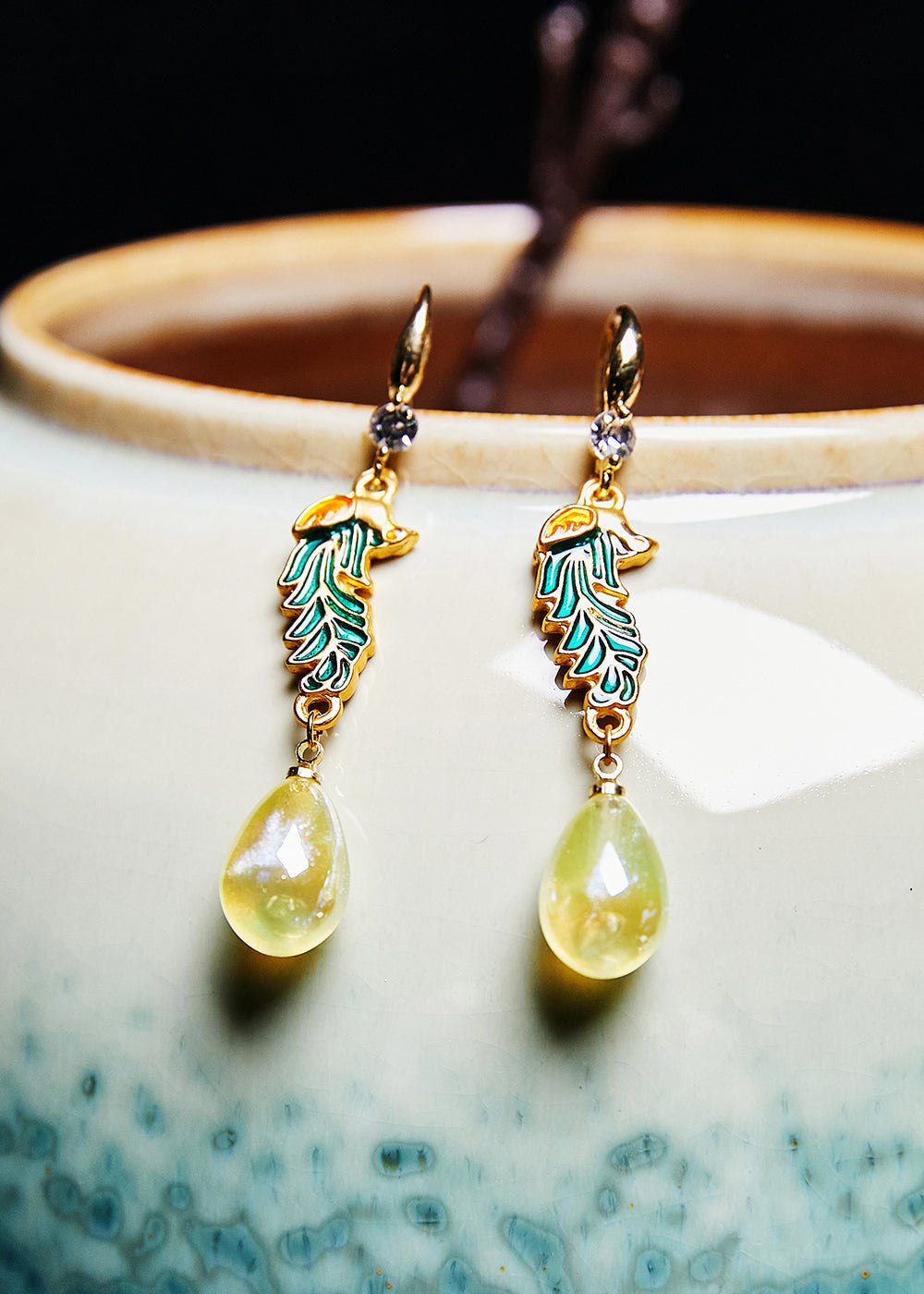 DIY Light Yellow Water Droplet Gilding Drop Earrings