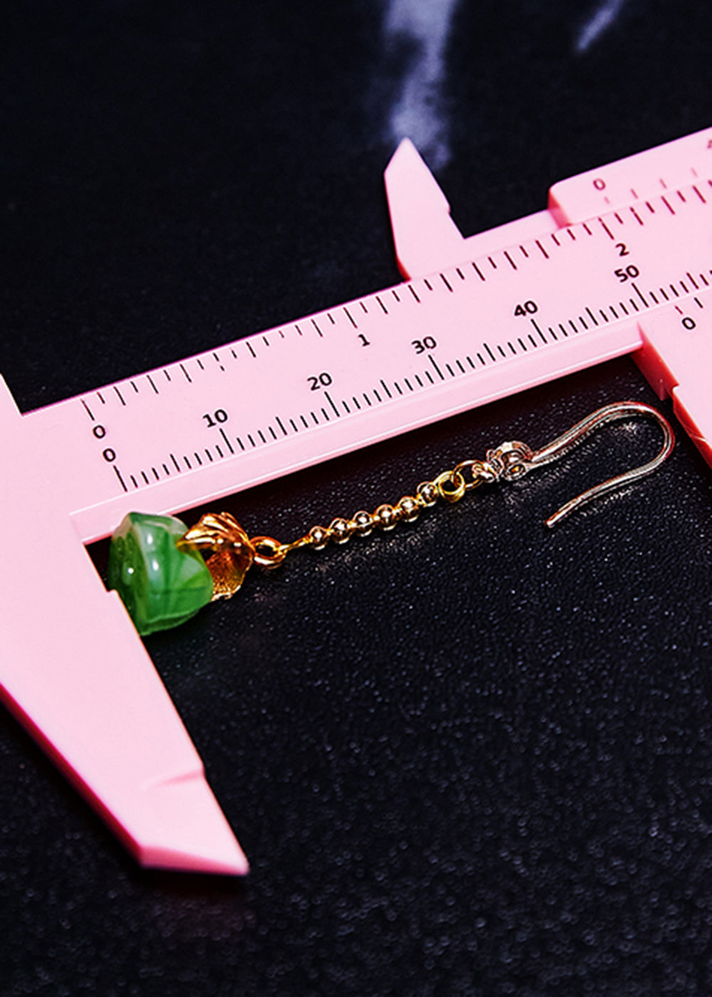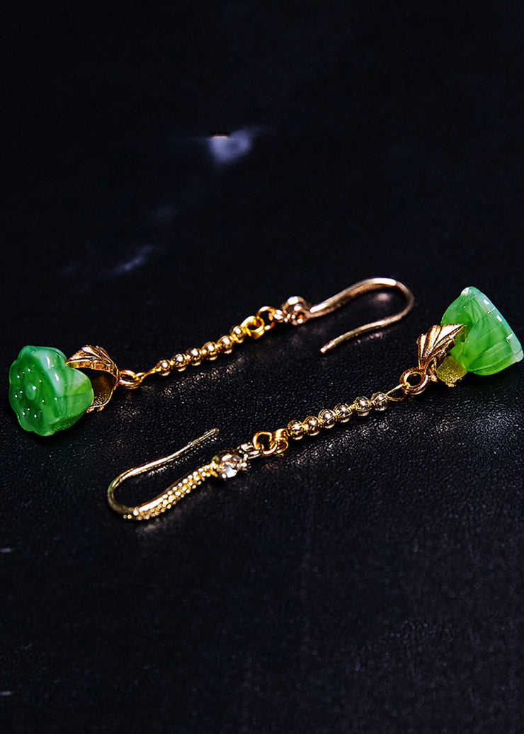 Elegant Green Lotus Seedpod Jade Gilding Drop Earrings