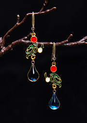 Stylish Peacock Blue Gem Stone Droplet Shape Drop Earrings