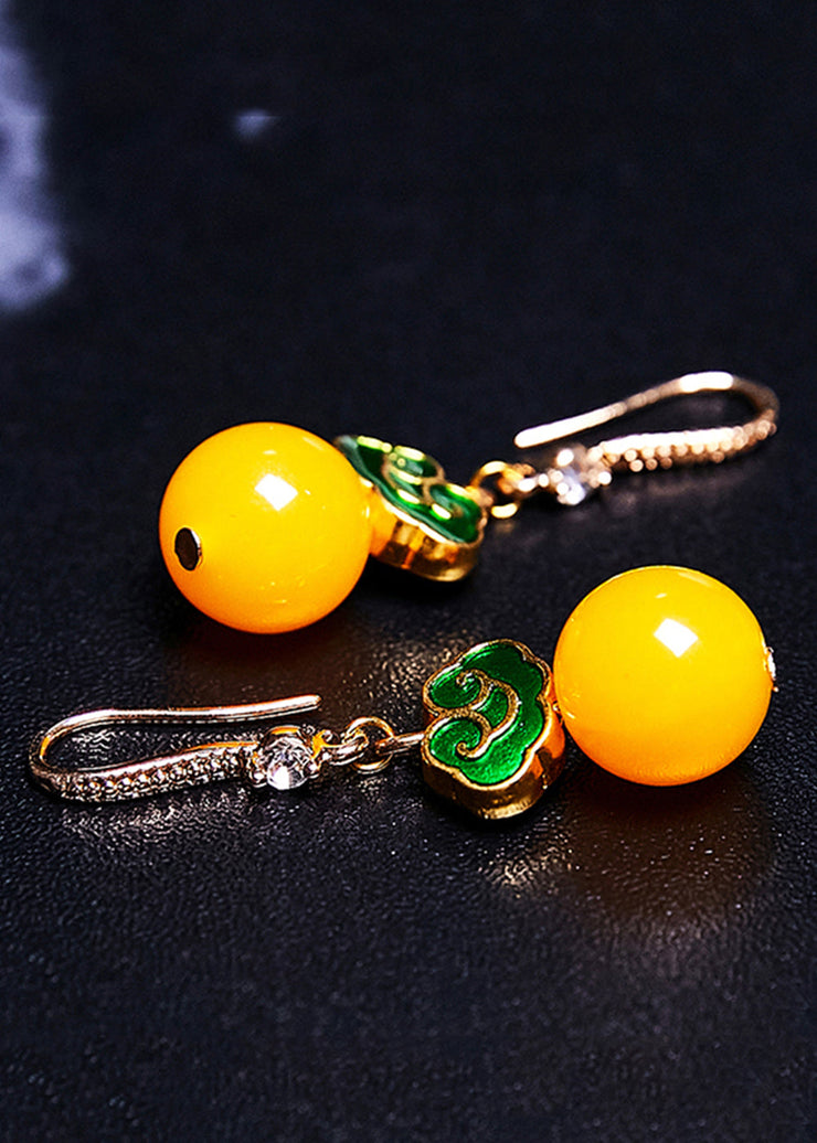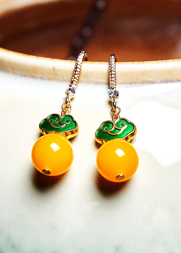 Stylish Yellow Beeswax 925 Silver Drop Earrings