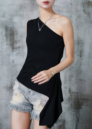 Black One Shoulder Cotton Top Asymmetrical Design Summer