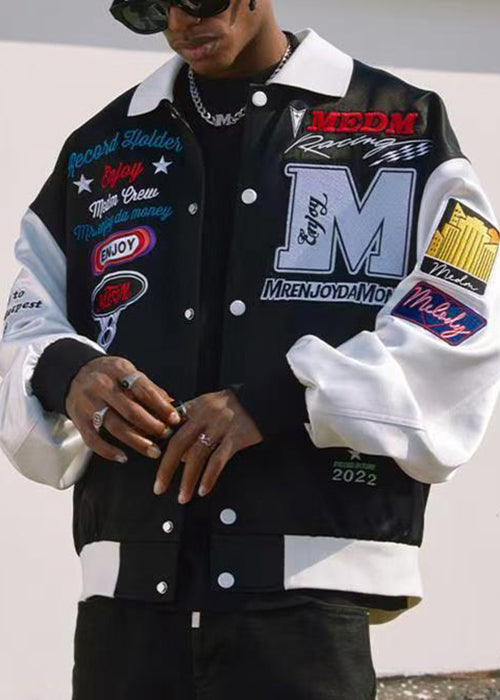 Stylish Black Embroideried Patchwork Cotton Mens Jackets Spring