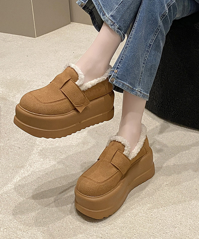 Stylish Splicing Platform Penny Loafers Brown Suede