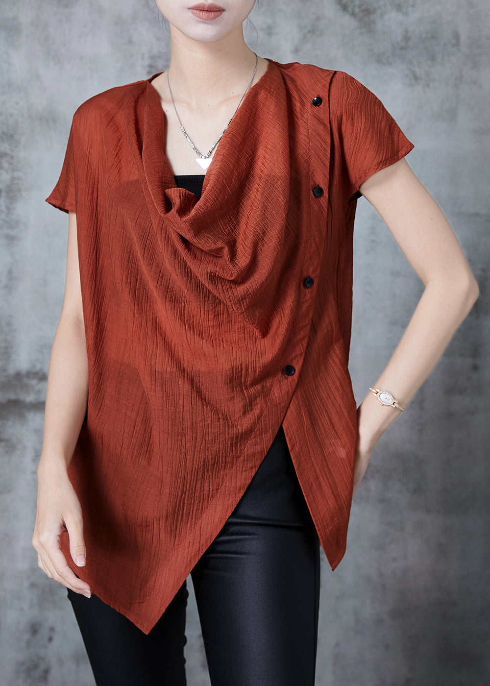 Fine Caramel Asymmetrical Design Chiffon Blouses Summer