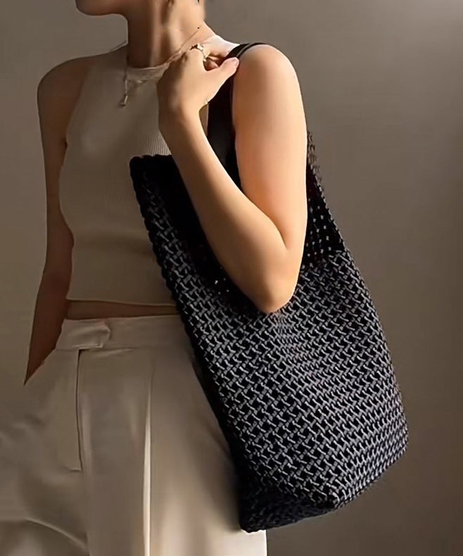 Elegant Black Large Capacity Hollow Out Shoulder Handbag