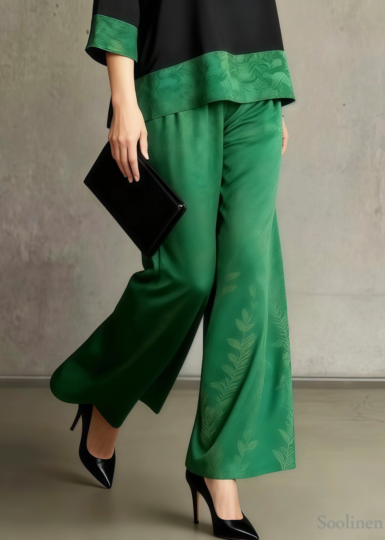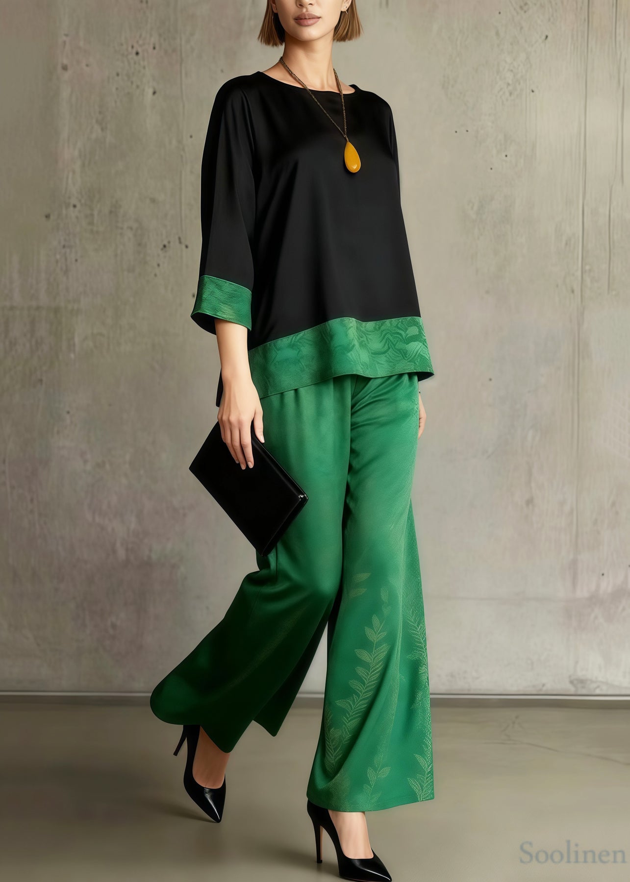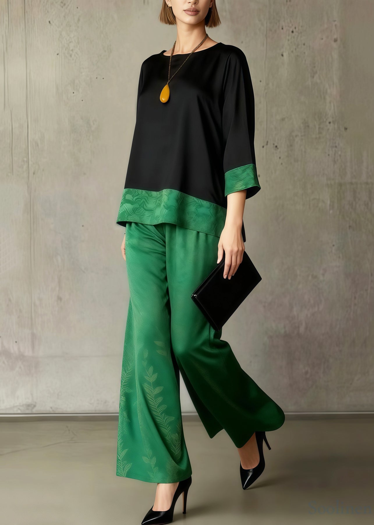 Boho Green Jacquard Patchwork Silk Women Sets 2 Pieces Summer