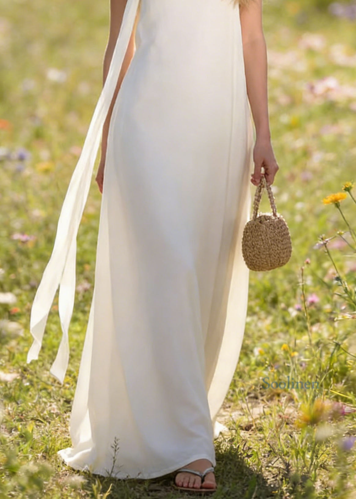 Italian White Simple Chiffon Spaghetti Strap Dress Summer