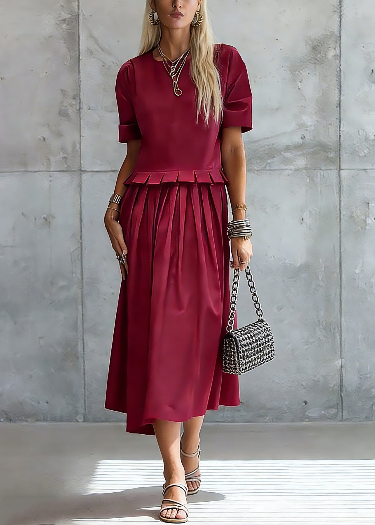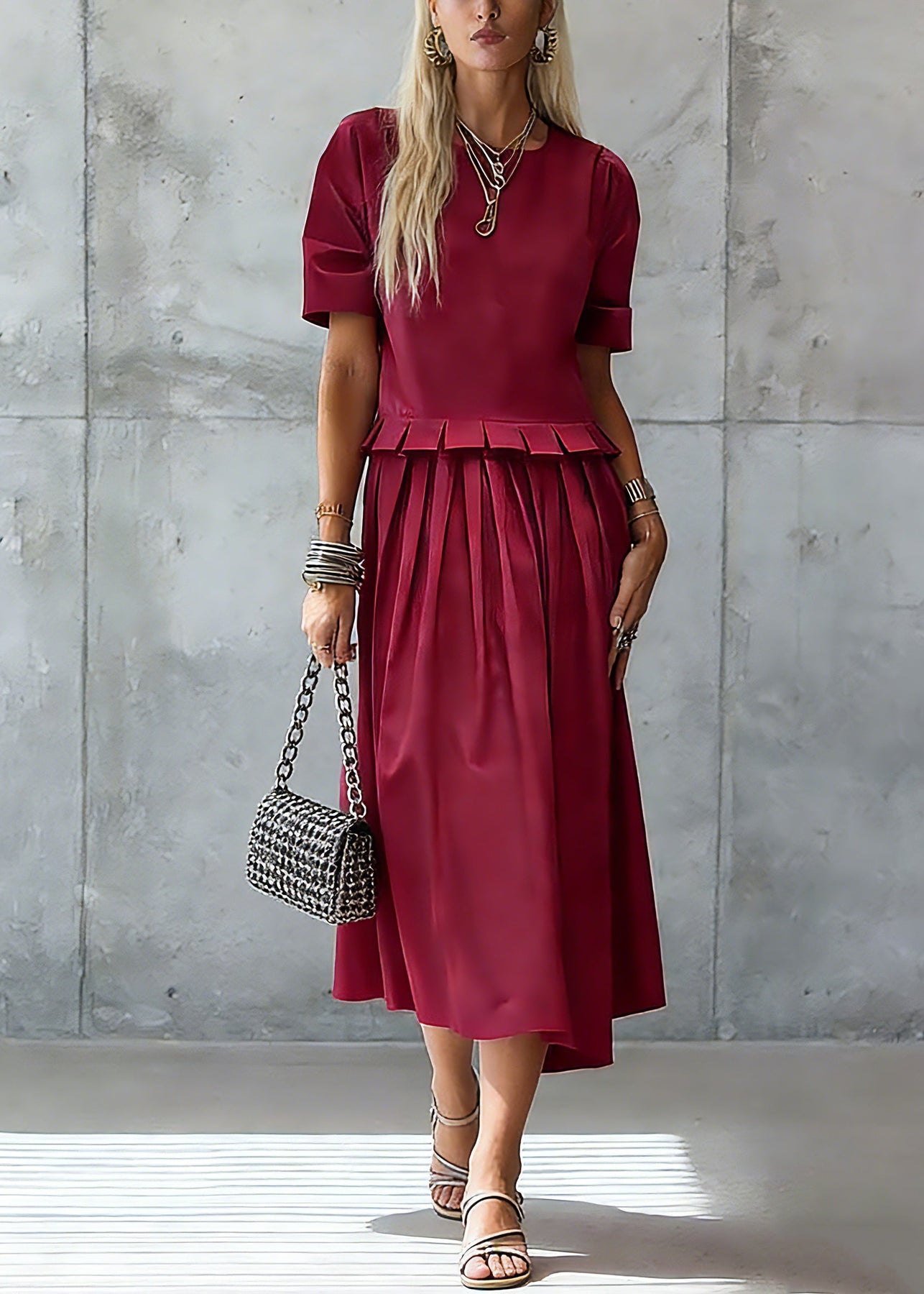 Stylish Red Ruffled Solid Maxi Dress Summer