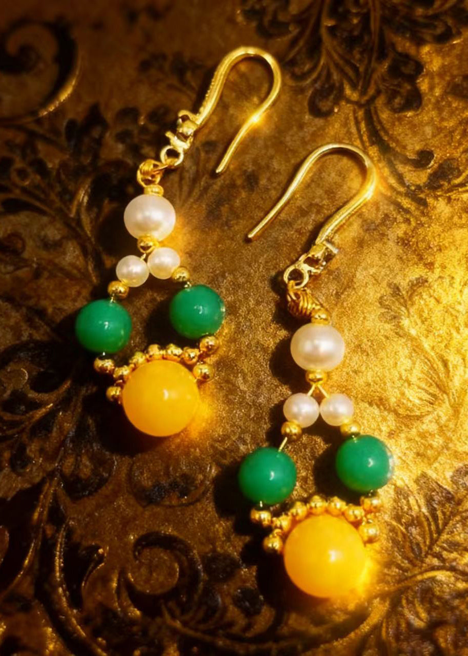 Fine Yellow Amber Chinese Style Drop Earrings