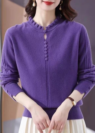 Italian Purple O Neck Butterfly Cozy Knit Sweater Fall
