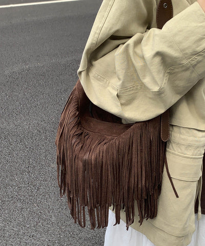 Casual Versatile Coffee Tassel Suede Crossbody Bag