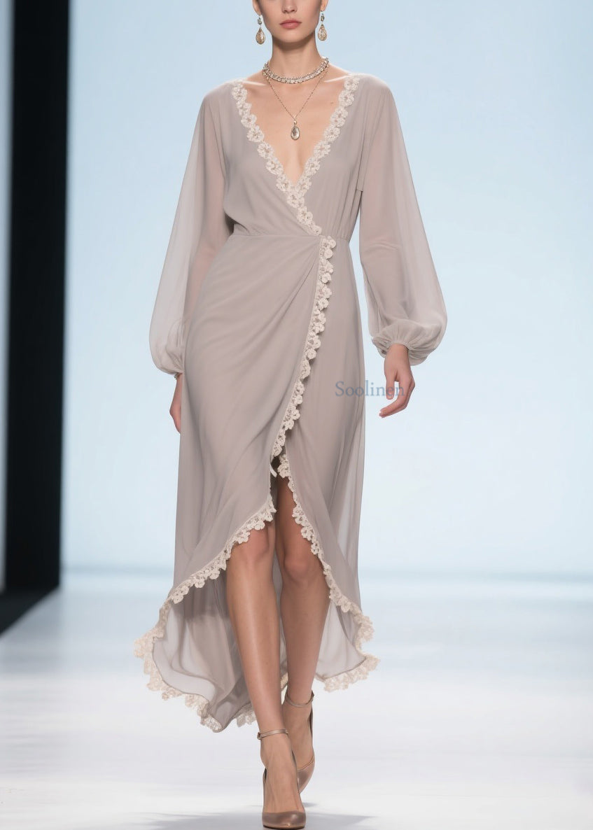 Elegant Apricot Lace Low High Design Chiffon Maxi Dresses