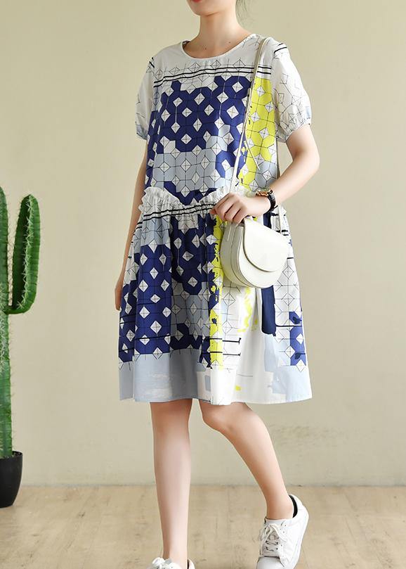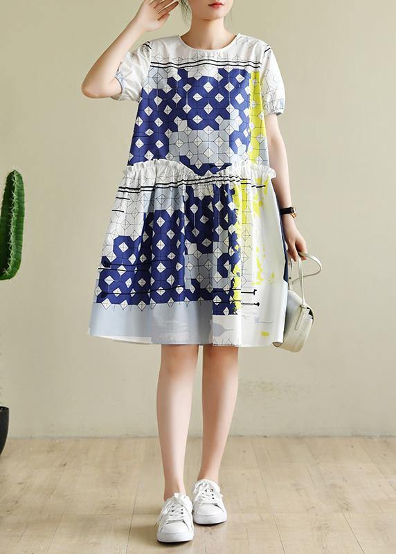 Frauen weiß karierte Kleider O Hals Rüschen kurzes Kleid