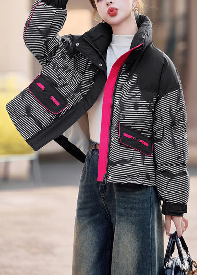 Boutique Black Zip Up Striped Duck Down Down Jacket Winter