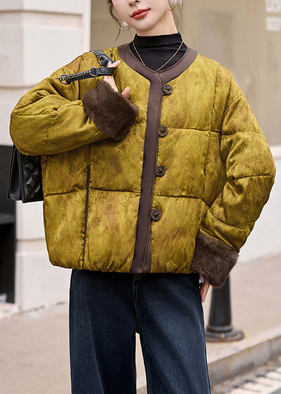 Chinese Style Green O Neck Print Duck Down Down Coat Winter