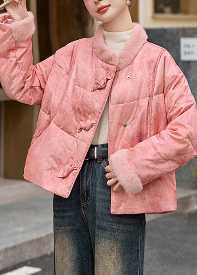 New Retro Pink O Neck Fur Patchwork Duck Down Winter Short Coats