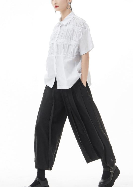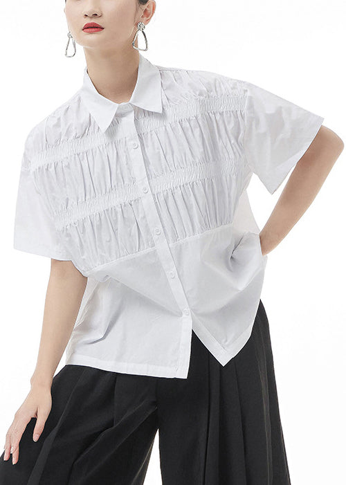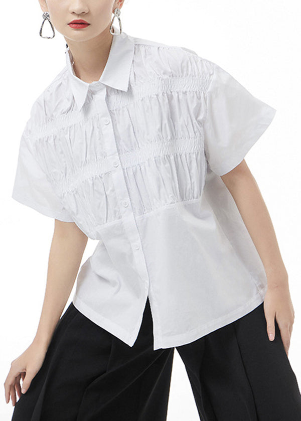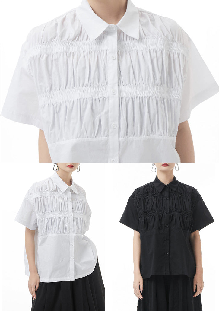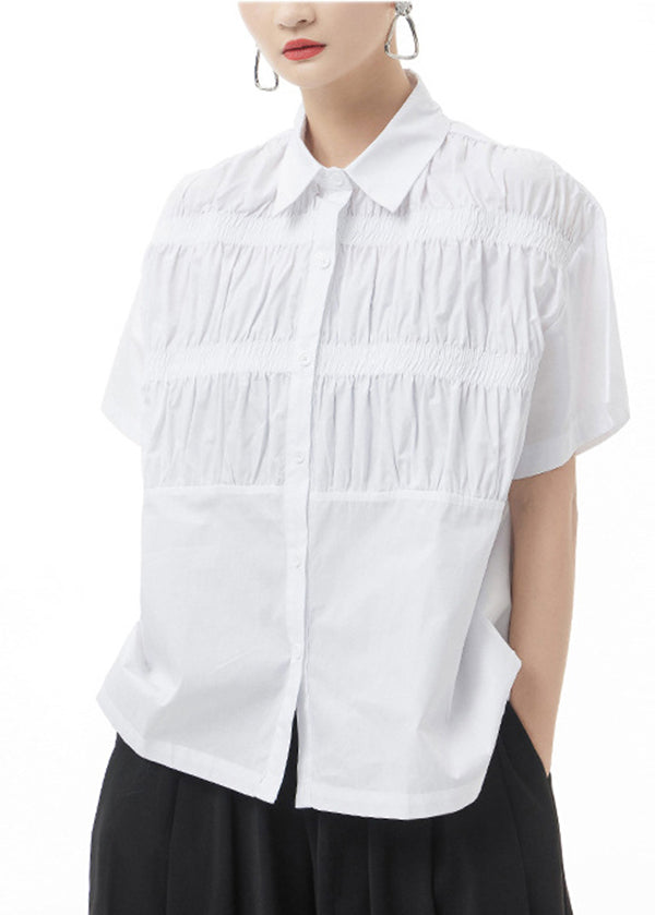 Plus Size weißes Bubikragen-Baumwollbluseoberteil mit kurzen Ärmeln