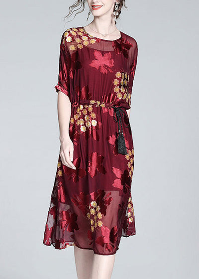 DIY Red O-Neck Print Tunic Silk Maxi Dresses And Slip Dress Two Pieces Set Summer