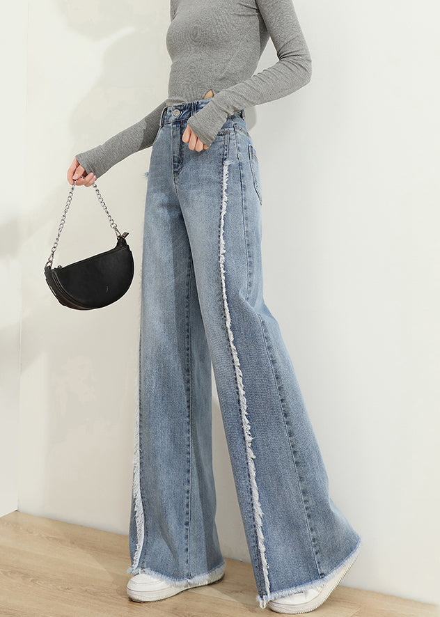 Modern Blue Tasseled Pockets Patchwork Denim Pants Spring